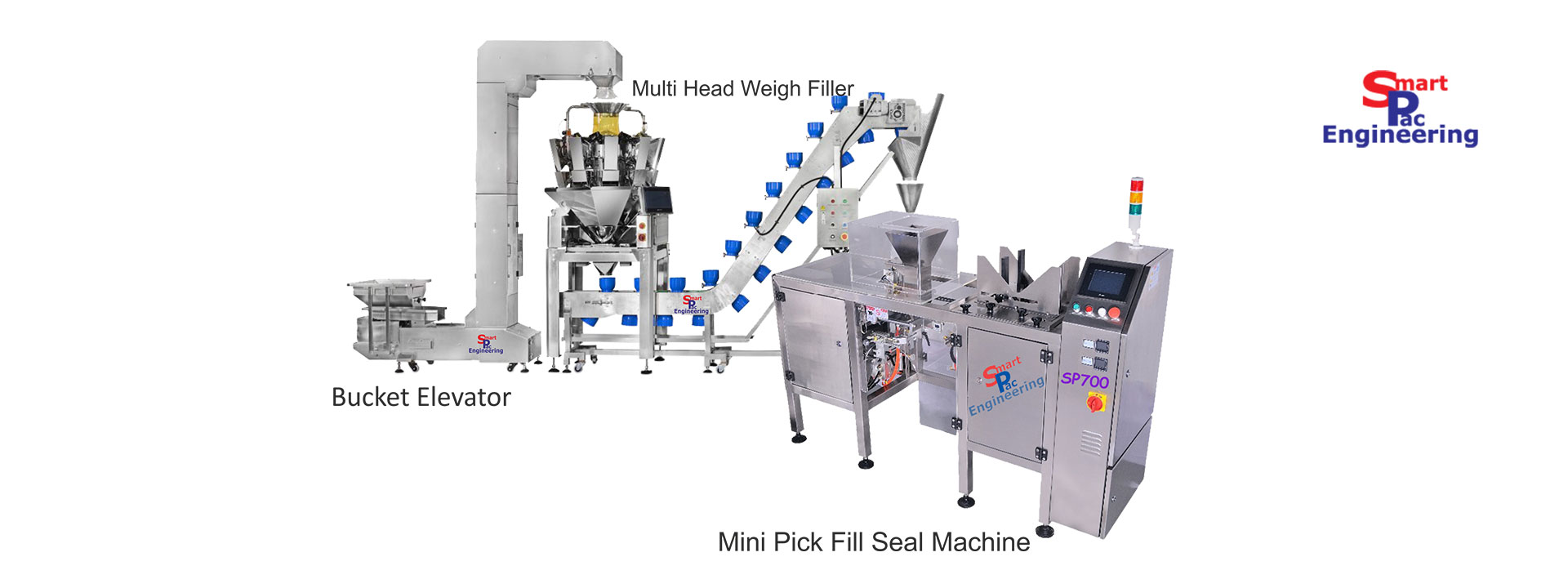The SPEG-M-700 Mini Pick Fill series is built to local standards. This pouch filling machine, often requiring only one operator, comes with many automation features and the latest technology from around the world. As an entry or middle level pouch filling machine it can be adapted to suit all premade flexible packaging solutions.